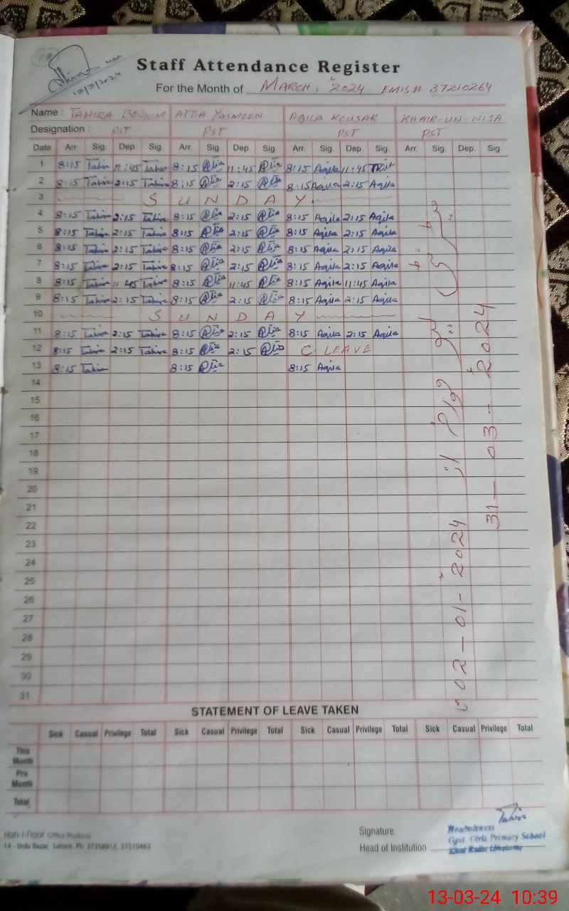 | Name: Ta**** Be**** Designation: (School Headmaster's/Headmistress's) P S T Phone/Cell Number: 03**** |