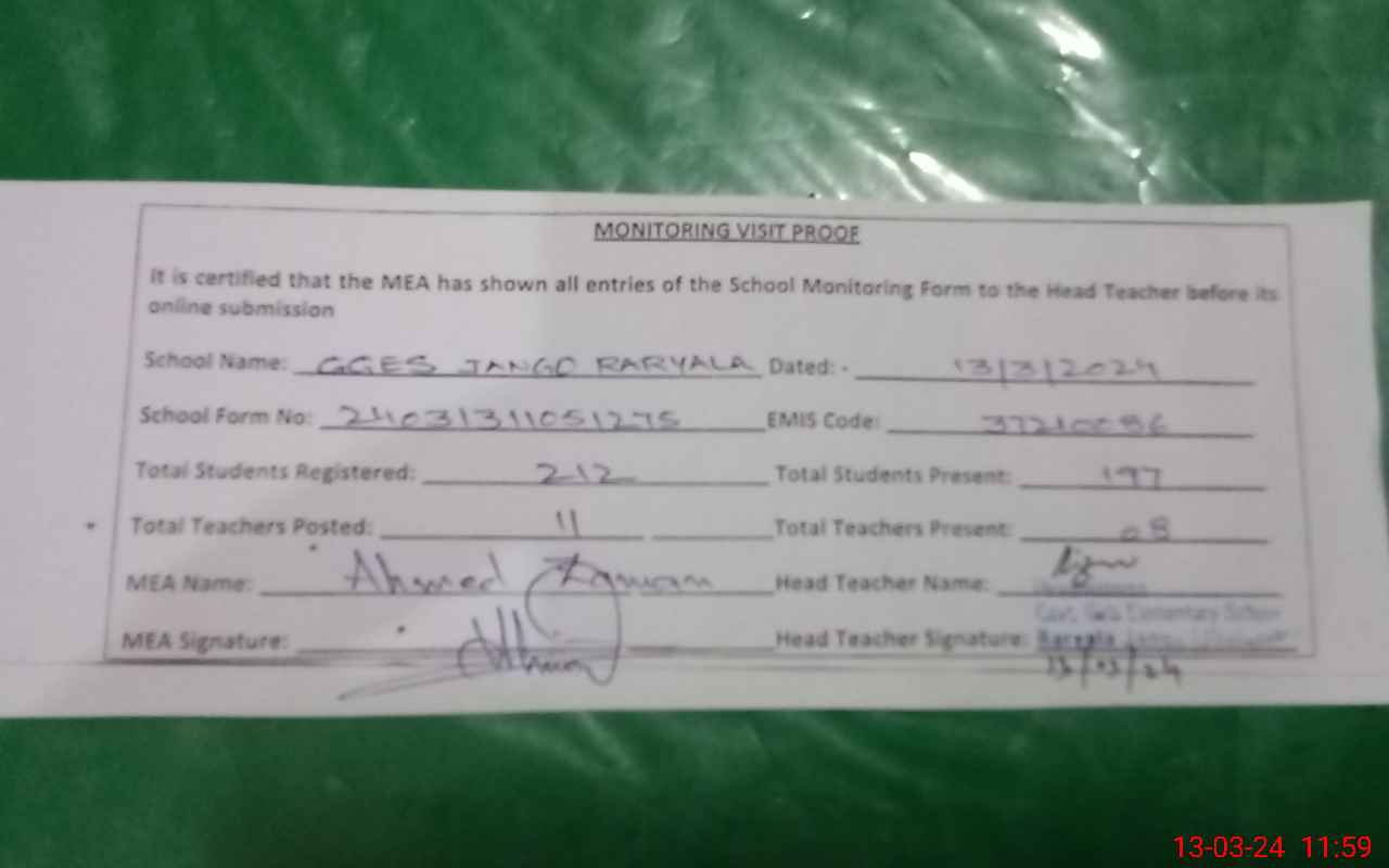 | Certified that this School was Inspected by the Undersigned MEA/DMO Today and the Information Stated Above is as Per Record. | |||||