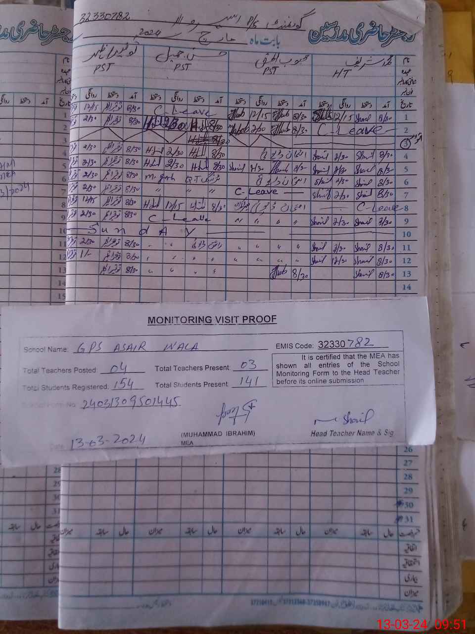| EMIS Code: 32330782 | Name of School: GPS ASAIR WALA | |||