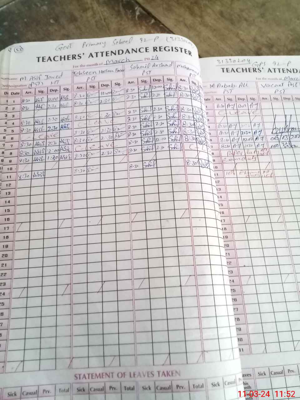 | 31**** | Mu**** Ar**** Al**** | 1 | 1 | 0 | 0 | 0 | 0 | 0 | 0 | 0 | 0 | 0 | Exam Duty |