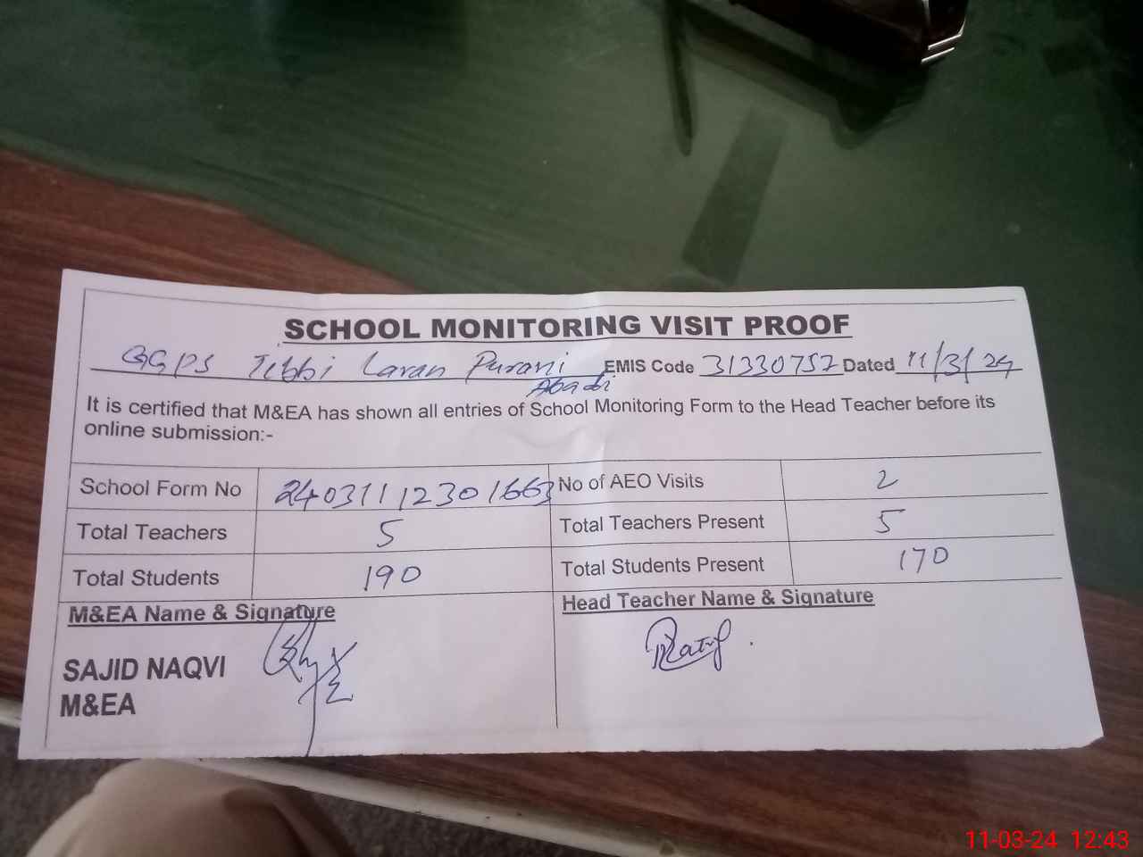 | EMIS Code: 31330757 | Name of School: GGPS TIBBI LARAN PURANI ABADI | |||