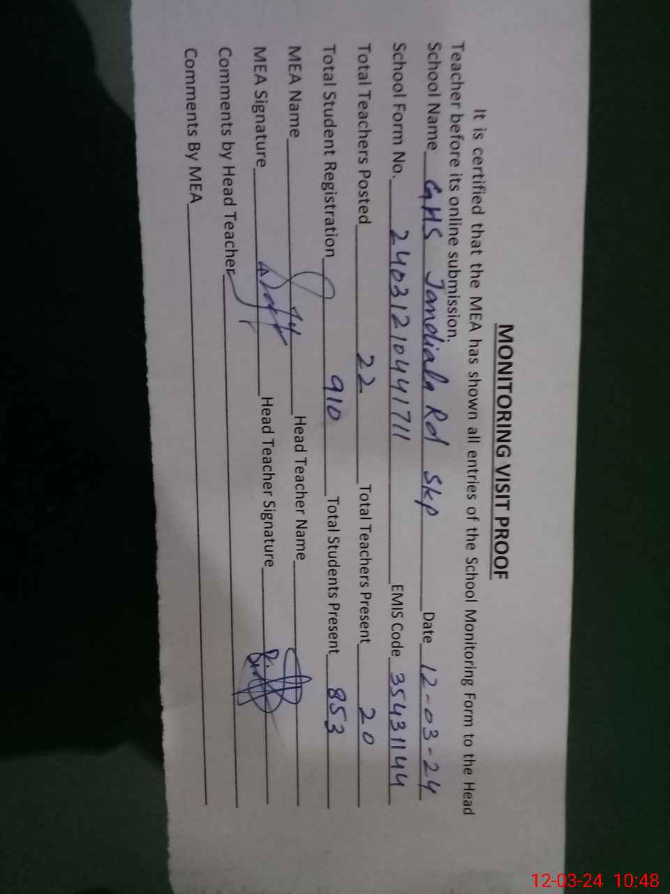 | EMIS Code: 35431144 | Name of School: GHS MC JANDIALA ROAD SHEHR | |||