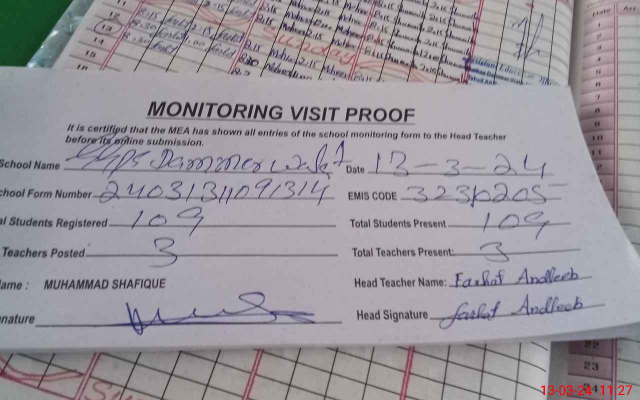 | EMIS Code: 32310205 | Name of School: GGPS DAMMER WALA JANUBI NO. 1 | |||