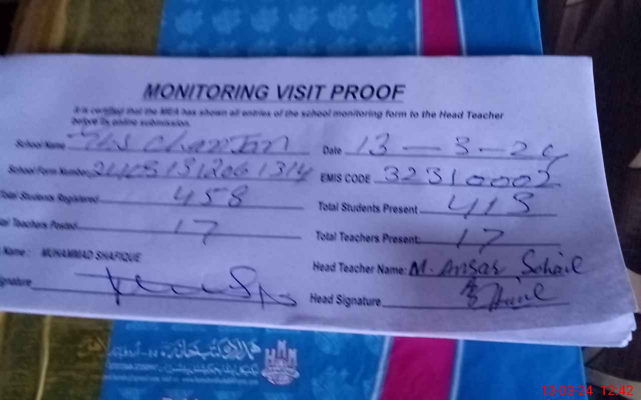 | EMIS Code: 32310002 | Name of School: GHS CHUNJAN | |||