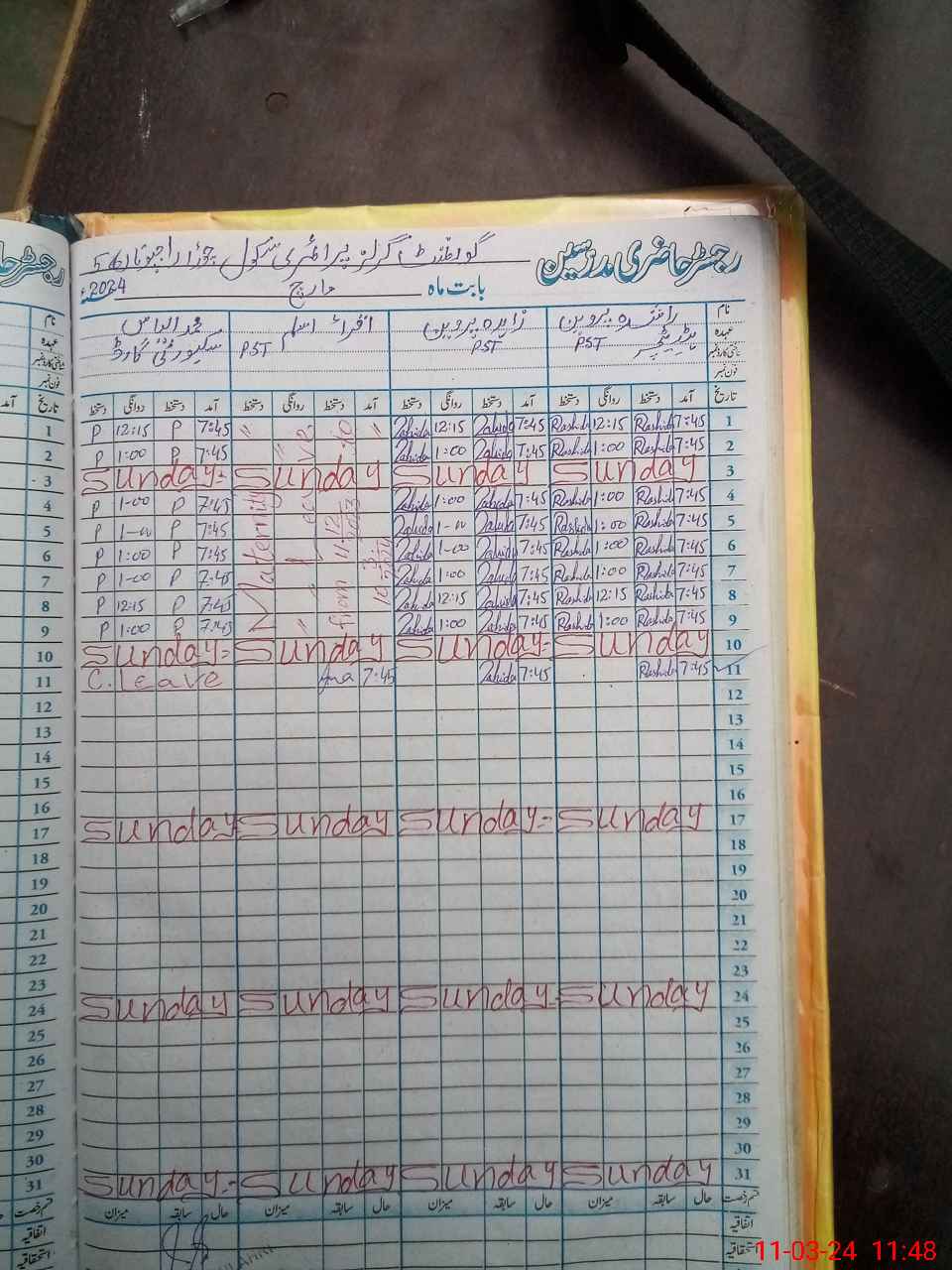 | Leave | Duty | Absent | Maternity | Medical | Ex- Pak |