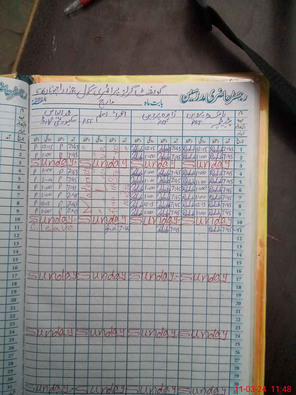 | CNIC | Full Name | Designation | R/C | Absence During Last Calender Month |