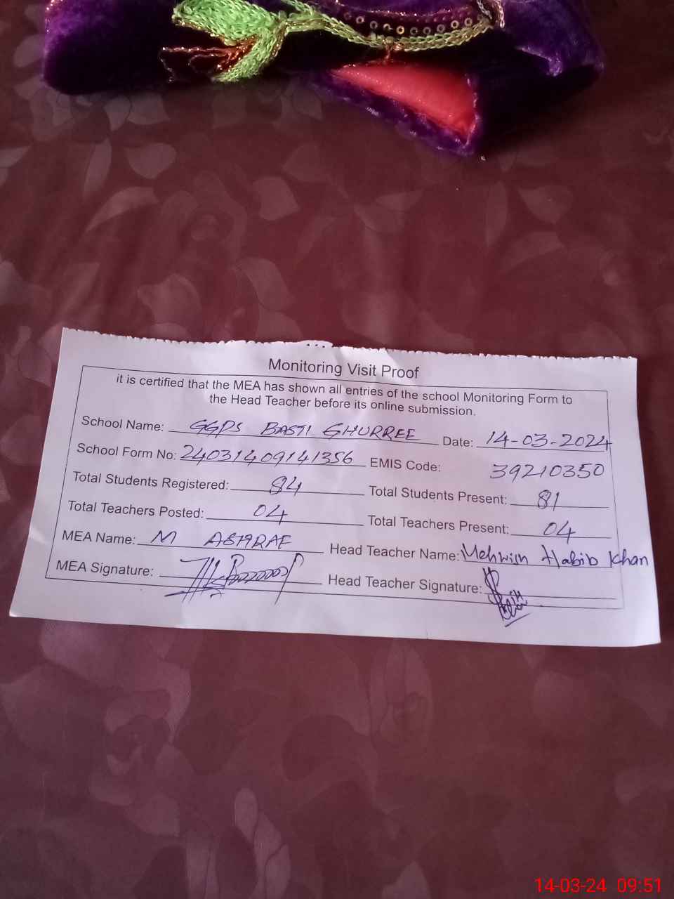 | EMIS Code: 39210350 | Name of School: GGPS BASTI GHUREE | |||