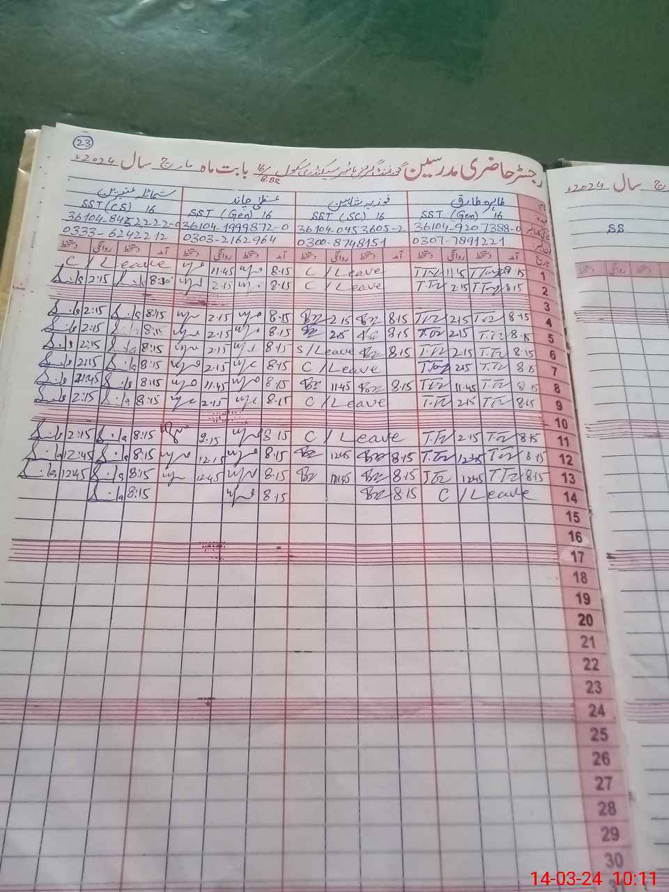 | CNIC | Full Name | Designation | R/C | Absence During Last Calender Month |