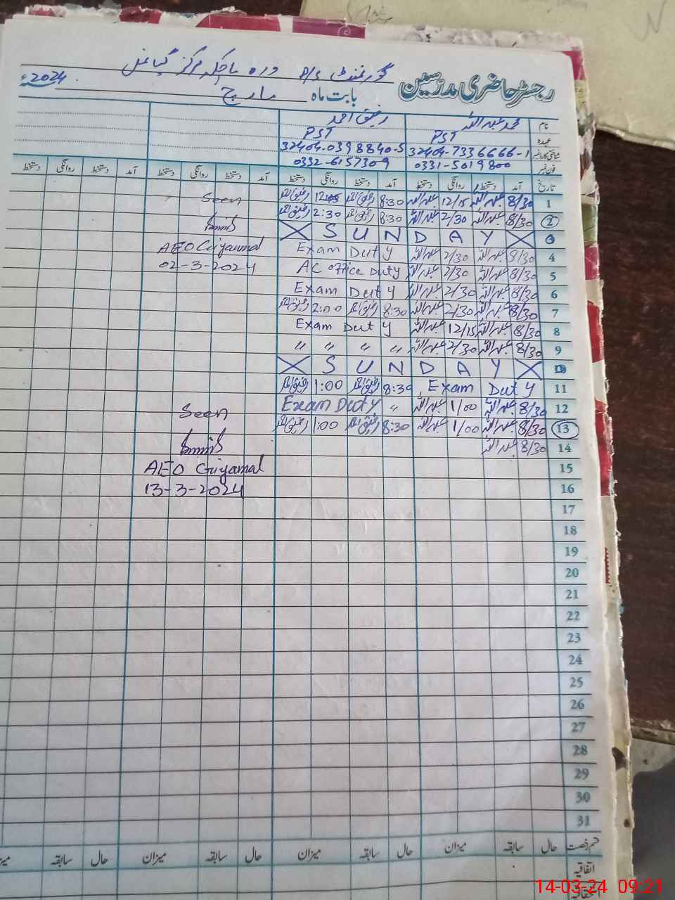 | 32**** | Ra**** Ah**** | 1 | 4 | 5 | 0 | 0 | 0 | 0 | 0 | 0 | 4 | Exam Duty | |