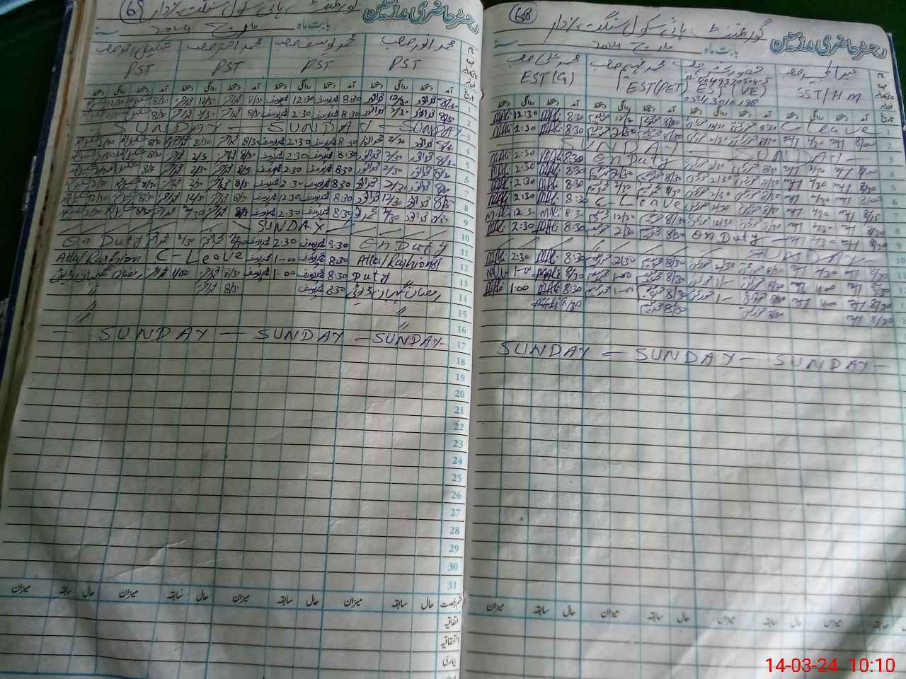 | Leave | Duty | Absent | Maternity | Medical | Ex- Pak |