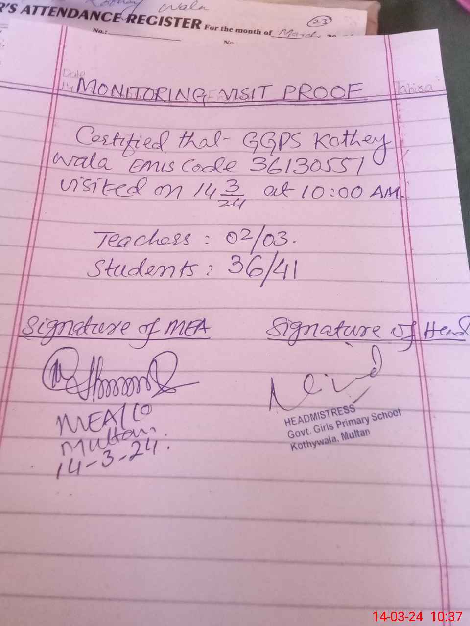 | EMIS Code: 36130551 | Name of School: GGPS KOTHAY WALA | |||