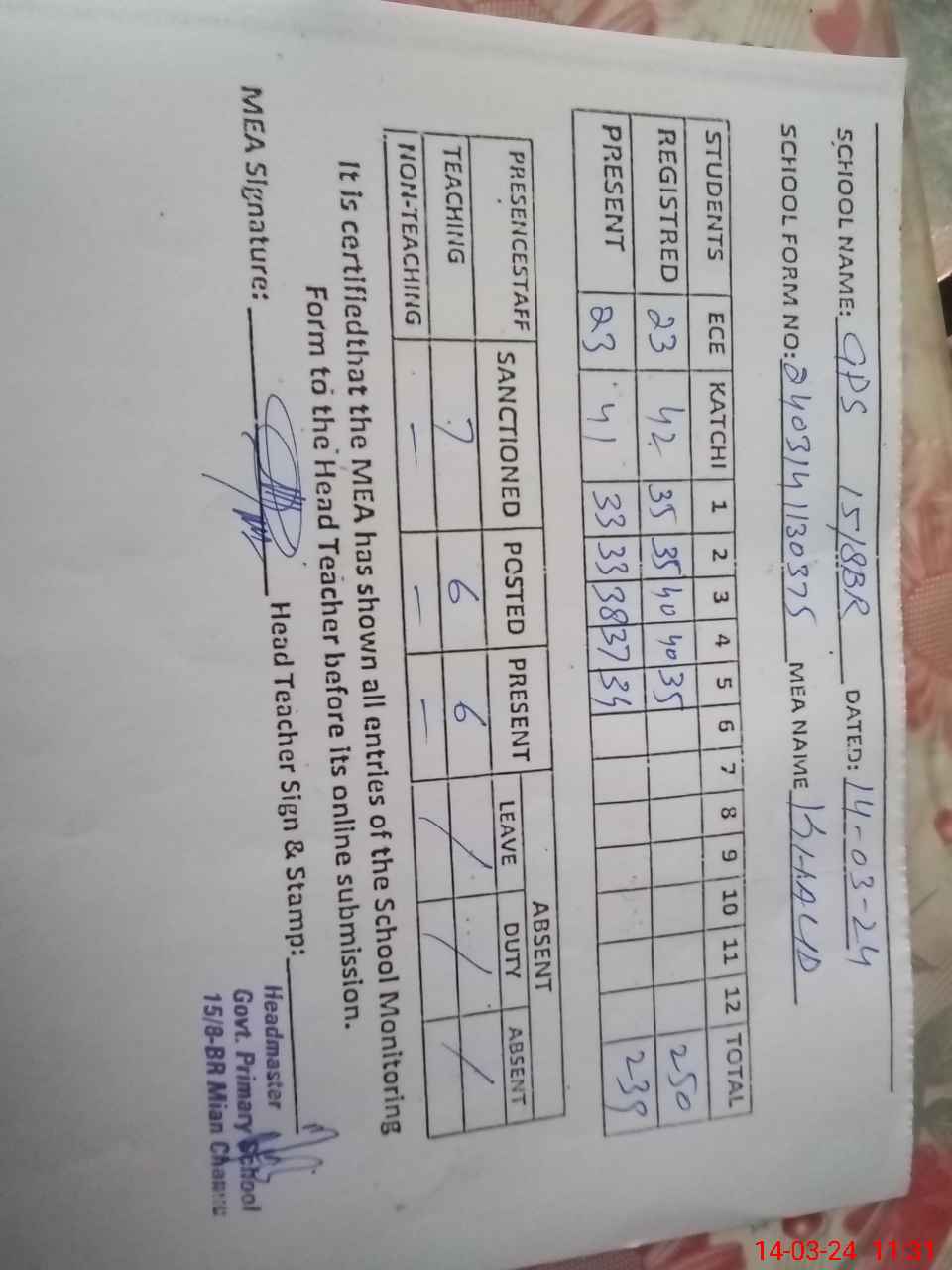 | EMIS Code: 36430239 | Name of School: GPS 15/8-BR, TULAMBA | |||