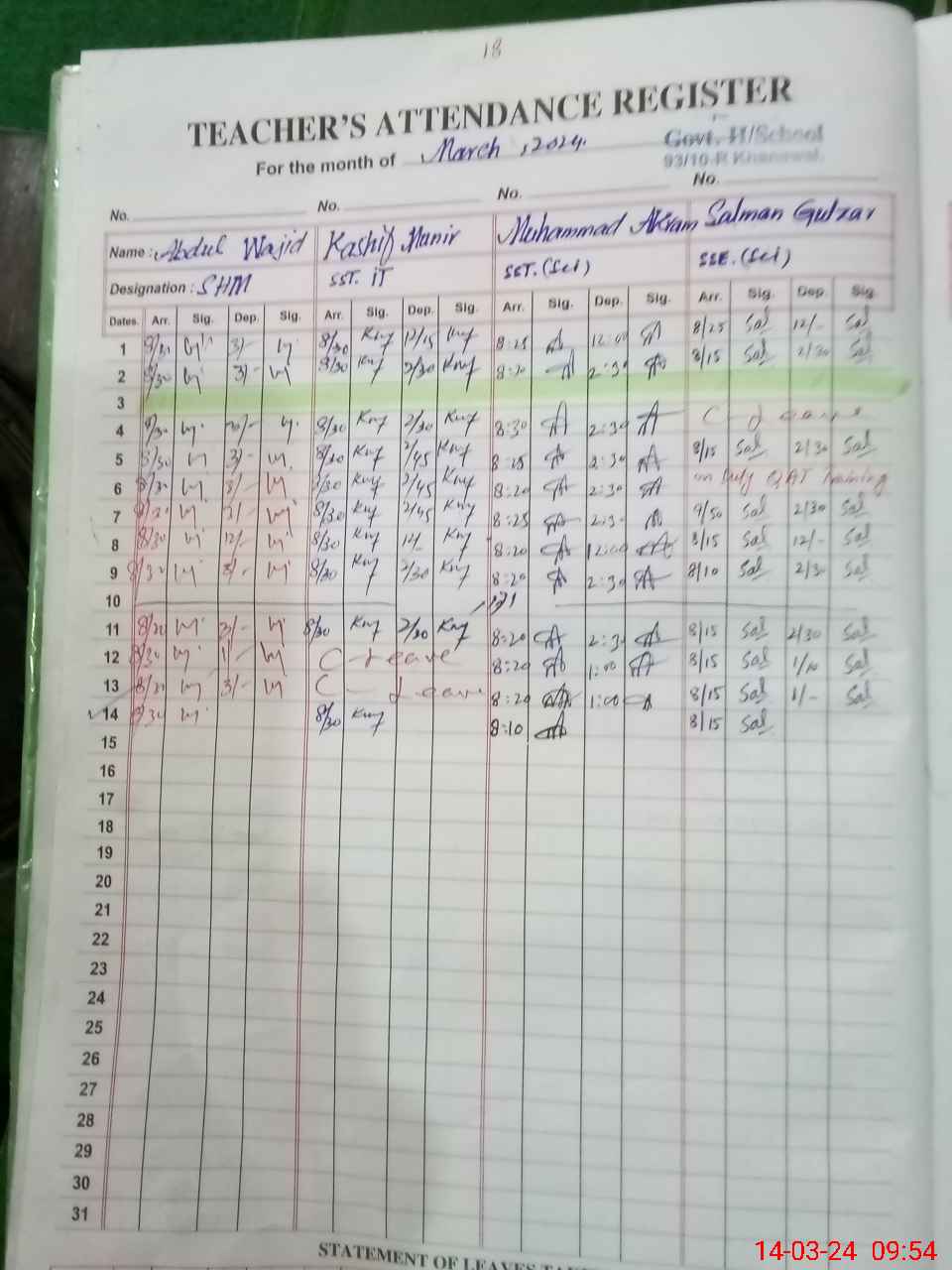 | 36**** | Ay**** Ah**** | EST | Regular | 0 | 0 | 0 | 0 | 0 | 0 | 0 | 0 | 0 | Exam Duty |