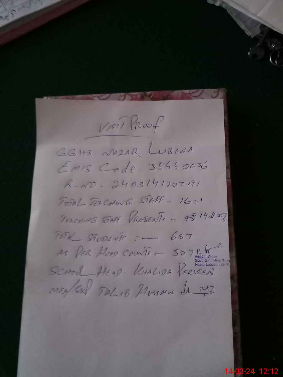 | EMIS Code: 35440036 | Name of School: GGHS NAZER LABANA P/O KHAS (MC) | |||