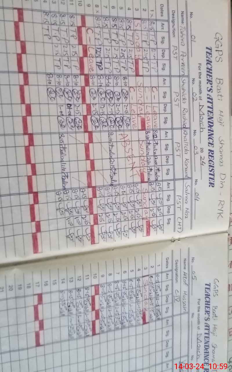 | 31**** | Kh**** Ka**** | PST | Regular | 1 | 6 | 0 | 0 | 0 | 0 | 0 | 0 | 1 | Exam Duty |