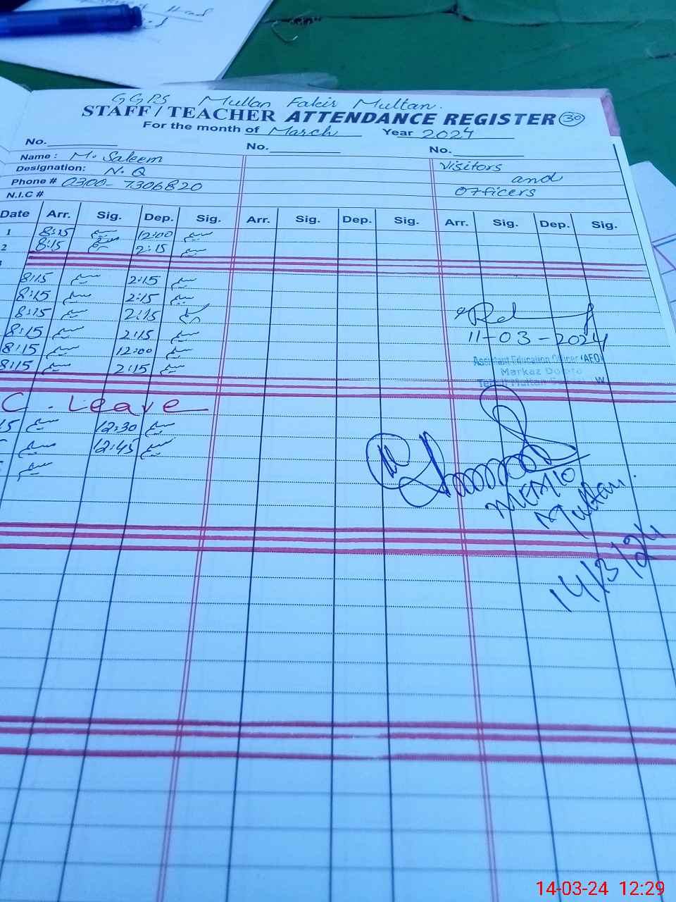 | EMIS Code: 36130410 | Name of School: GGPS MULAN FAQIR MULTAN | |||