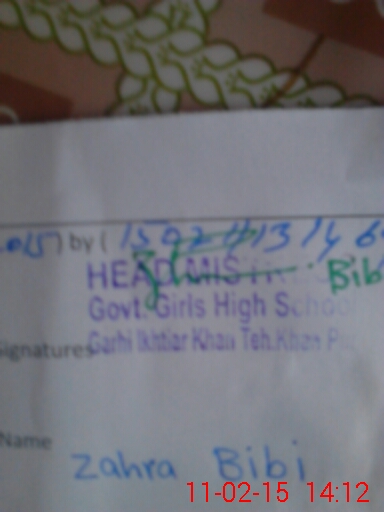 | Name: Ay**** Mu**** Designation: (School Headmaster's/Headmistress's) Head Phone/Cell Number: 03**** |