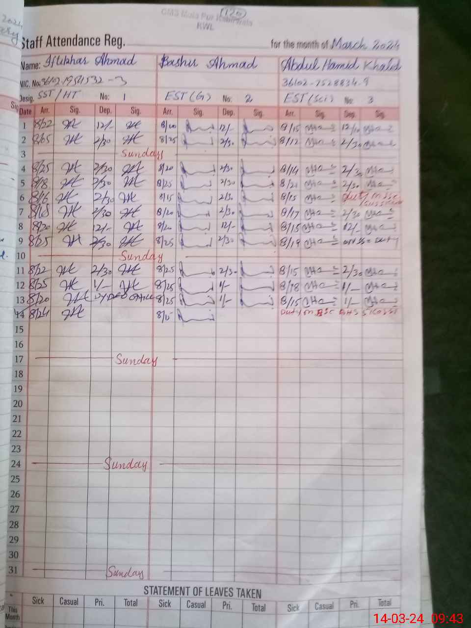 | 36**** | Ab**** Ha**** Kh**** | EST | Regular | 0 | 0 | 0 | 0 | 0 | 0 | 0 | 0 | 0 | Exam Duty |