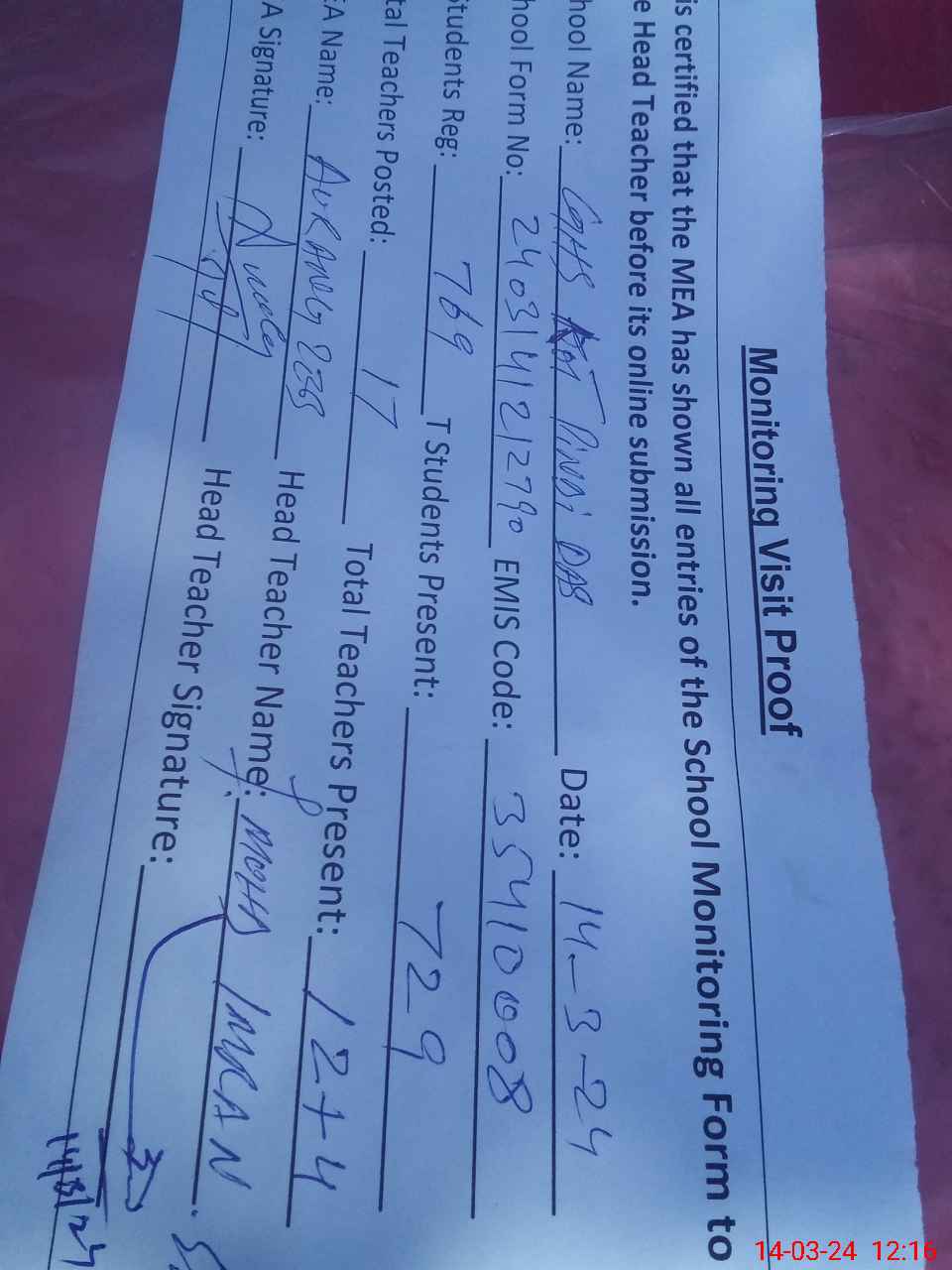 | EMIS Code: 35410008 | Name of School: GHS KOT PINDI DAS | |||