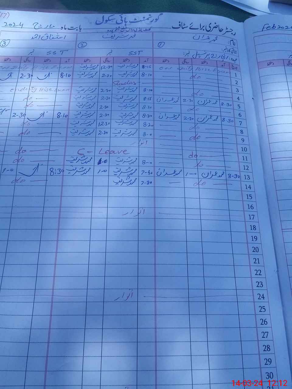 | 35**** | As**** Ah**** | 6 | 2 | 0 | 0 | 0 | 0 | 0 | 0 | 0 | 0 | 0 | Exam Duty |