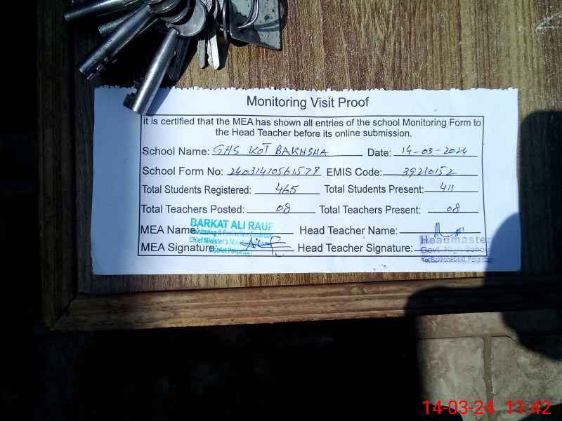 | EMIS Code: 39210152 | Name of School: GHS KOT BAKHSHA | |||