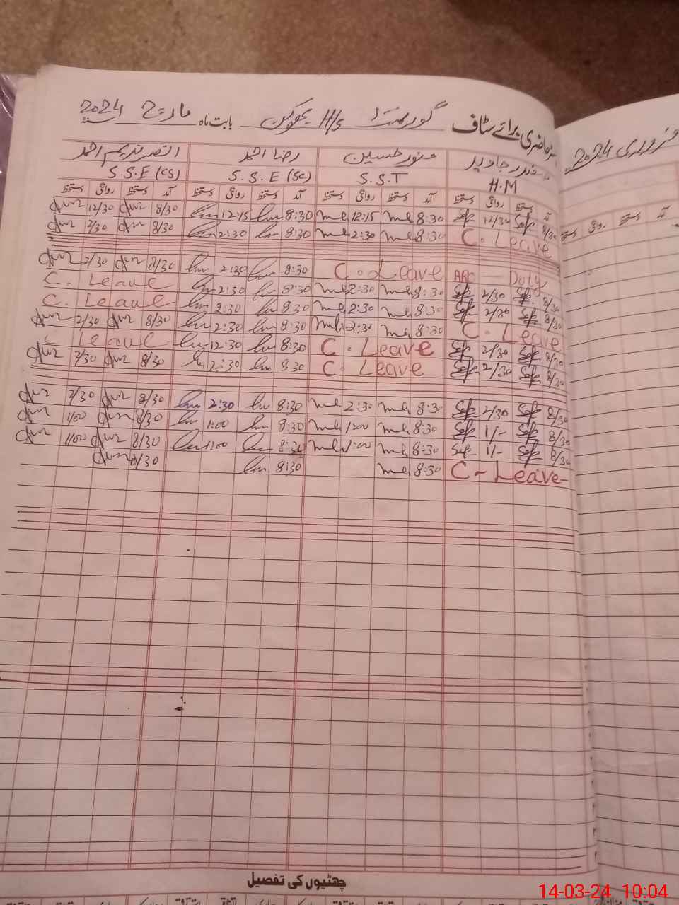 | Leave | Duty | Absent | Maternity | Medical | Ex- Pak |