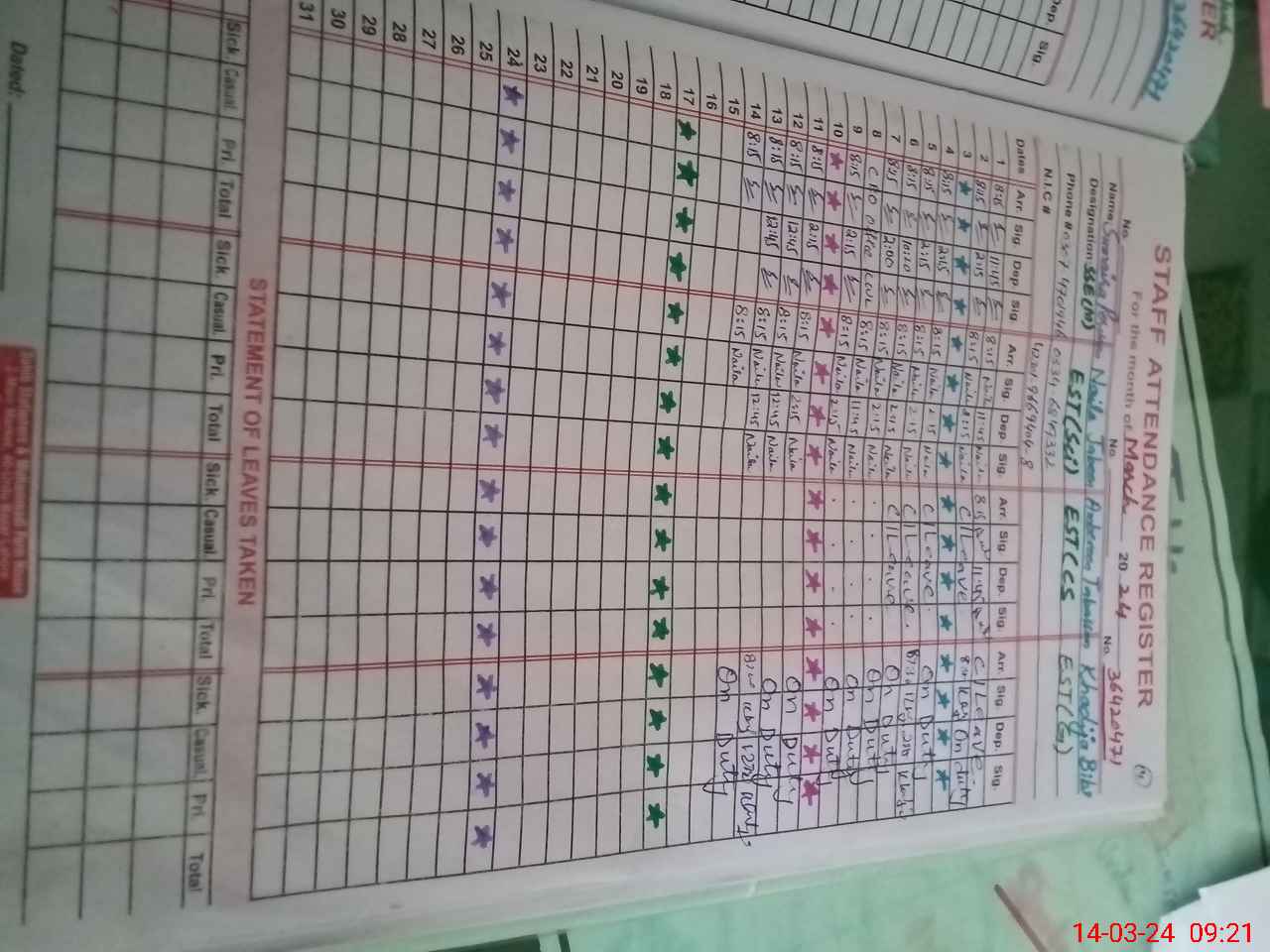 | 36**** | Kh**** Bi**** | Regular | 1 | 0 | 0 | 0 | 0 | 0 | 0 | 0 | 1 | Exam Duty | |