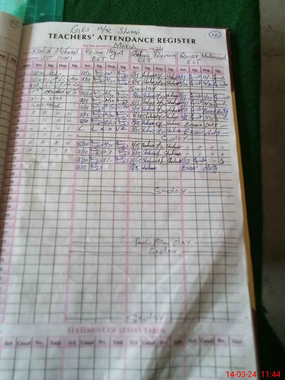 | 36**** | Qa**** Ma**** | Regular | 1 | 0 | 0 | 0 | 0 | 0 | 0 | 0 | 1 | Exam Duty | |
