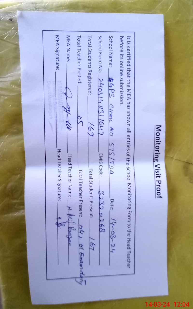 | EMIS Code: 32320268 | Name of School: GPS CHAK NO.575 TDA | |||