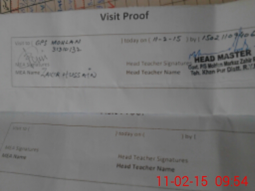 | Attendance Register | Head Teacher | MEA with School | Visit Proof |
