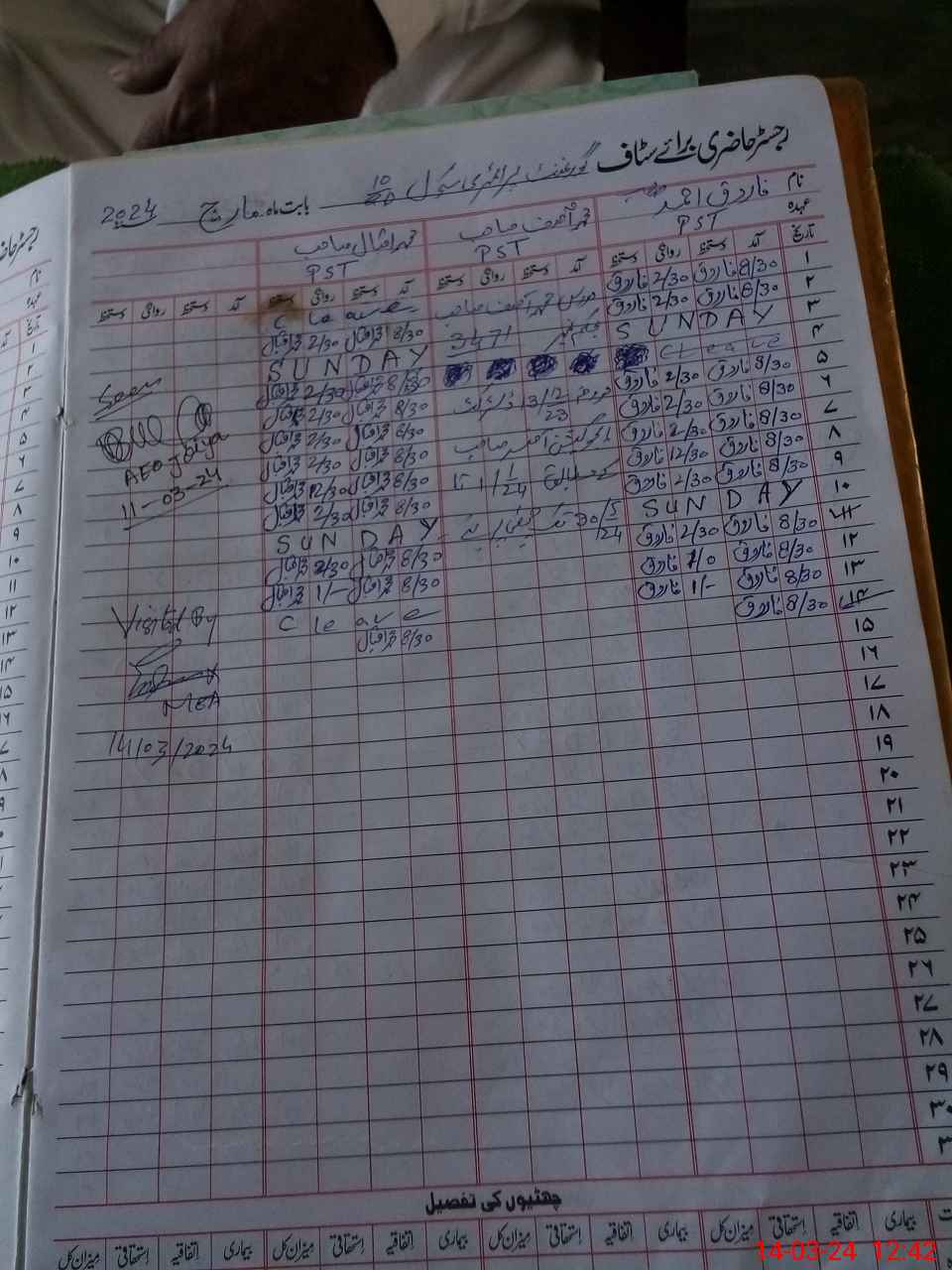 | CNIC | Full Name | Designation | R/C | Absence During Last Calender Month |