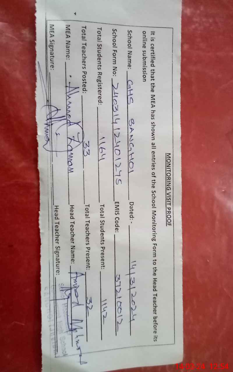 | EMIS Code: 37210012 | Name of School: GHS SANGHOI | |||