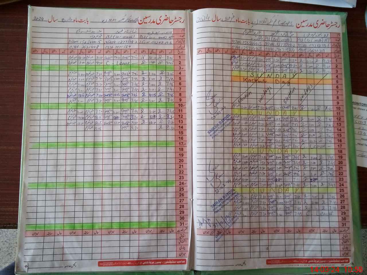 | CNIC | Full Name | Designation | R/C | Absence During Last Calender Month |