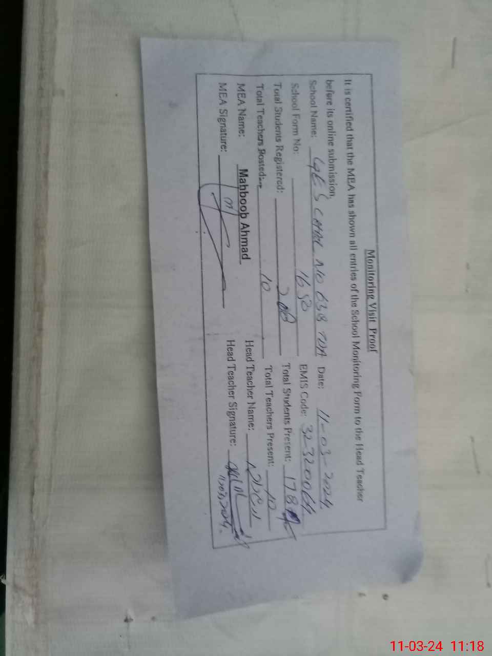 | EMIS Code: 32320064 | Name of School: GES CHAK NO. 638/TDA | |||