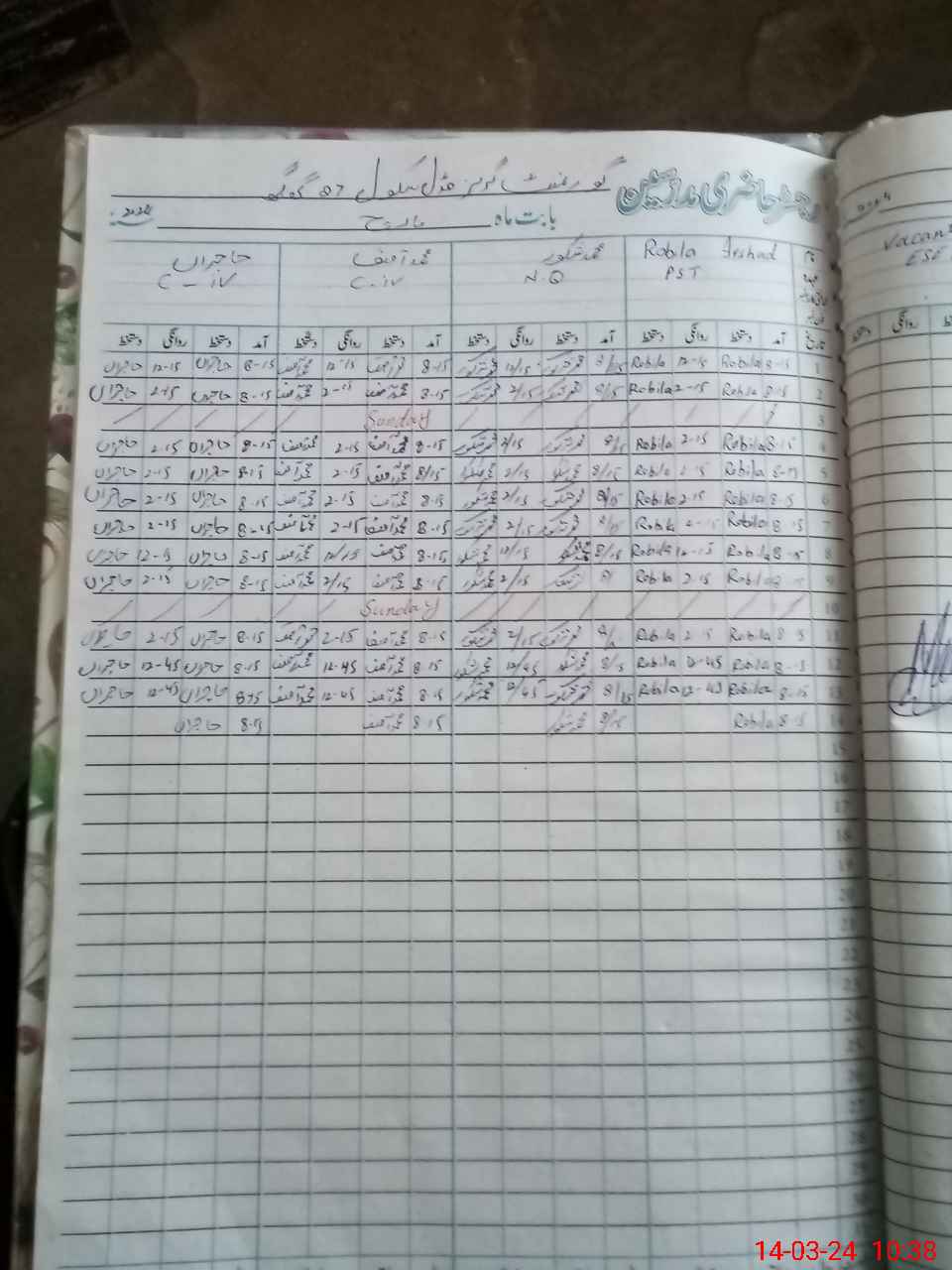 | CNIC | Full Name | Designation | R/C | Absence During Last Calender Month |