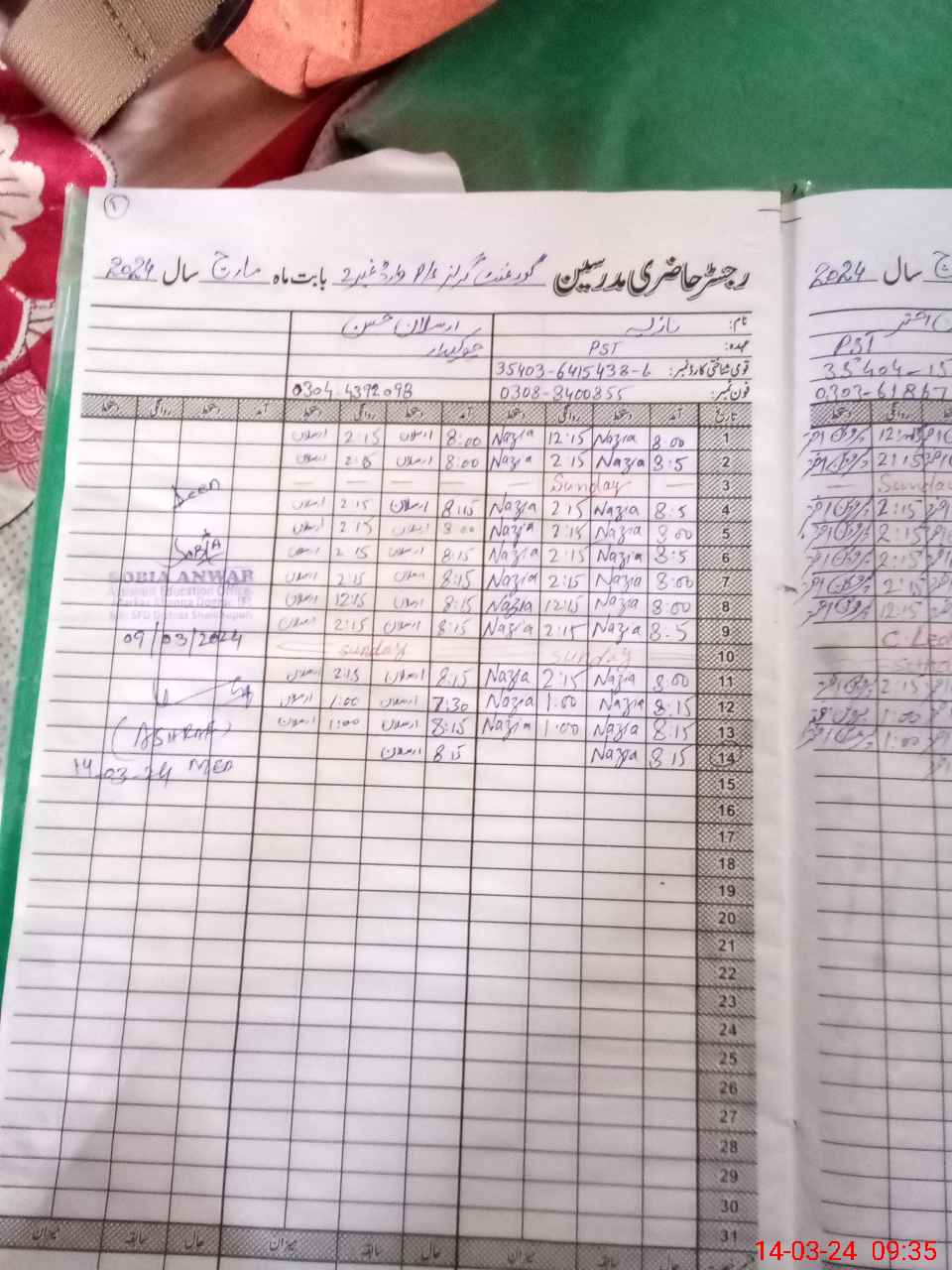 | Name: SH**** MA**** Designation: (School Headmaster's/Headmistress's) PST Phone/Cell Number: 03**** |