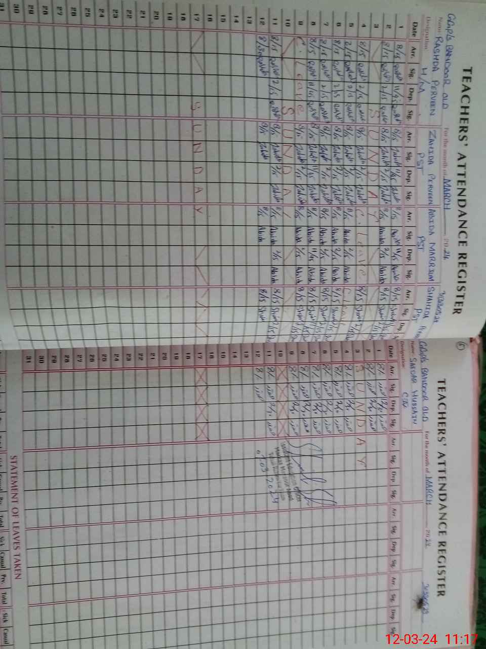 | CNIC | Full Name | Designation | R/C | Absence During Last Calender Month |