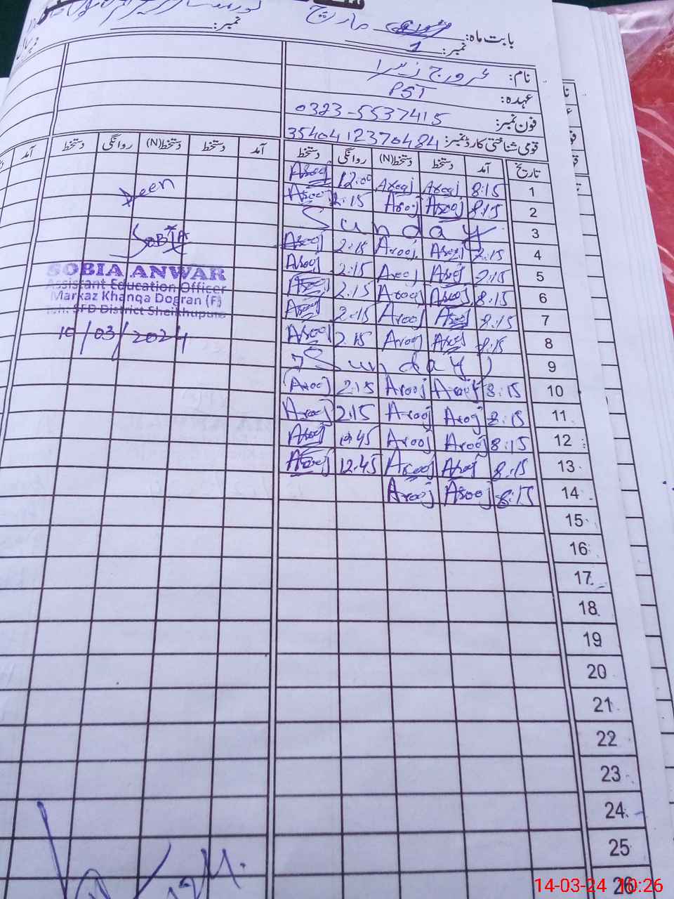 | Name: Aro**** Za**** Designation: (School Headmaster's/Headmistress's) ESE ScMath Phone/Cell Number: 03**** |