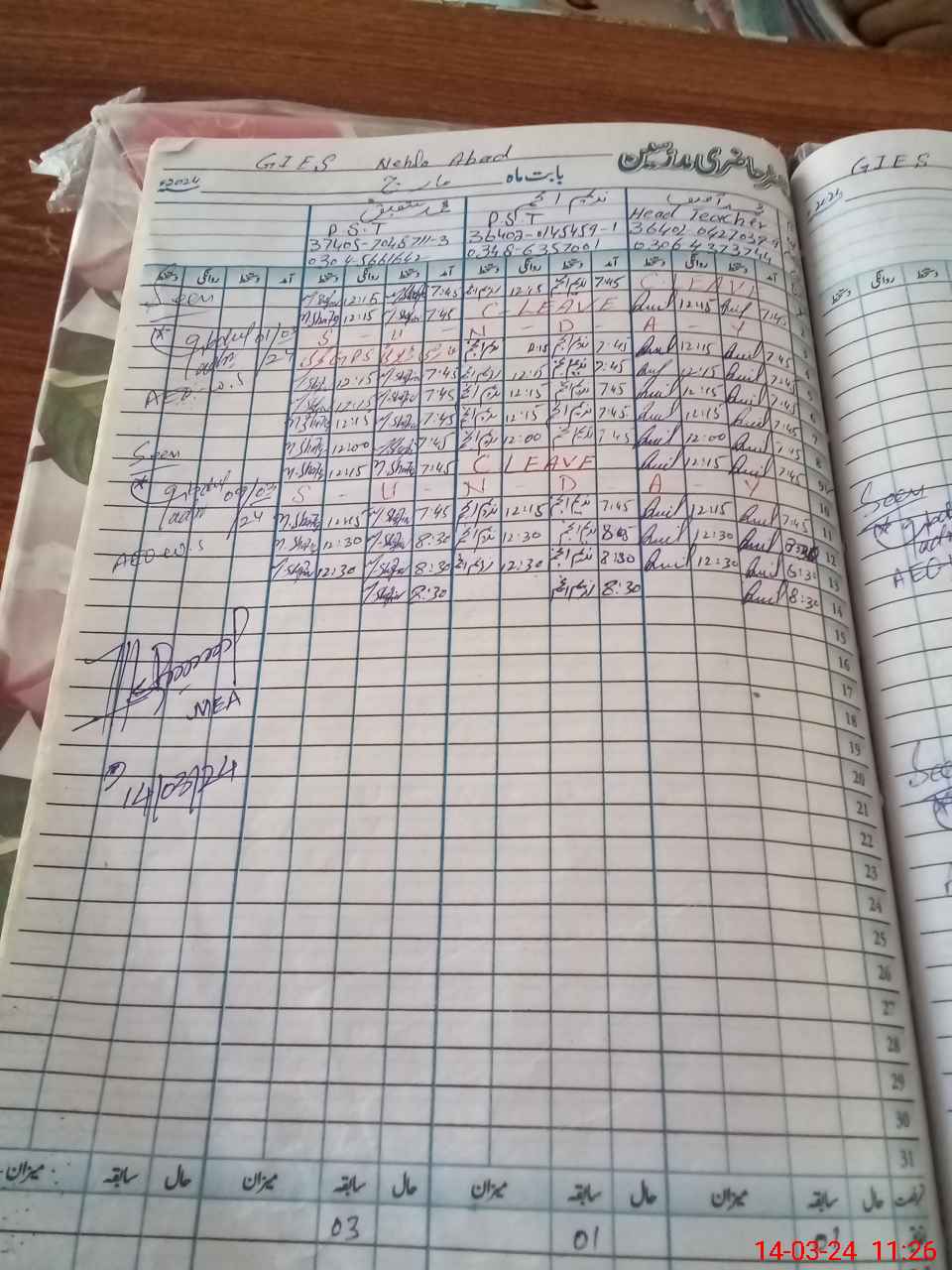 | Name: MAS**** Designation: (School Headmaster's/Headmistress's) PST Phone/Cell Number: 03**** |