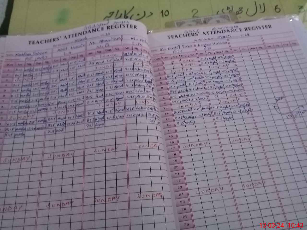 | CNIC | Full Name | Designation | R/C | Absence During Last Calender Month |
