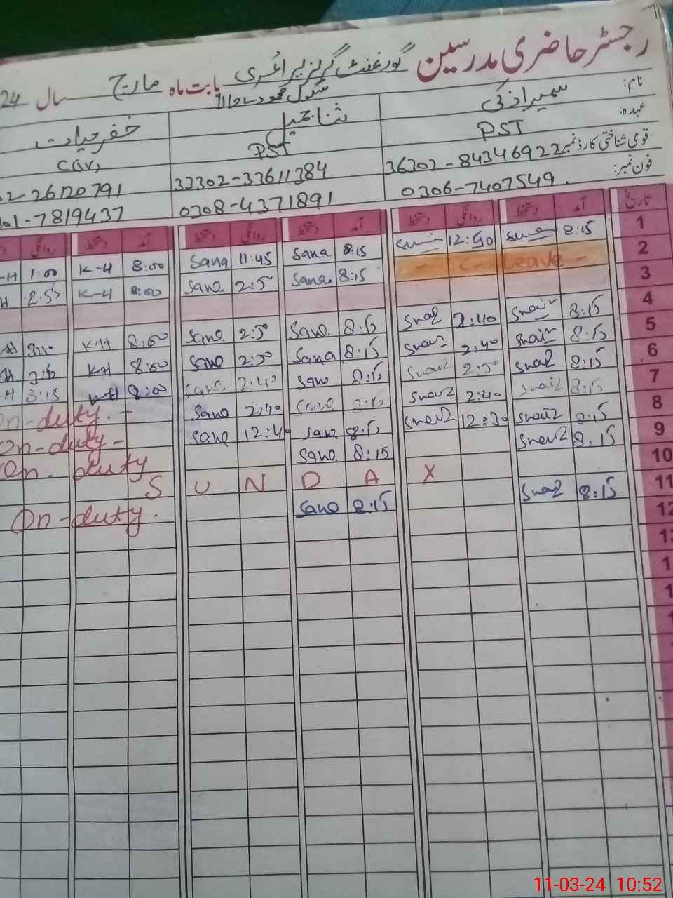 | Name: SU**** ZA**** Designation: (School Headmaster's/Headmistress's) PST Phone/Cell Number: 03**** |