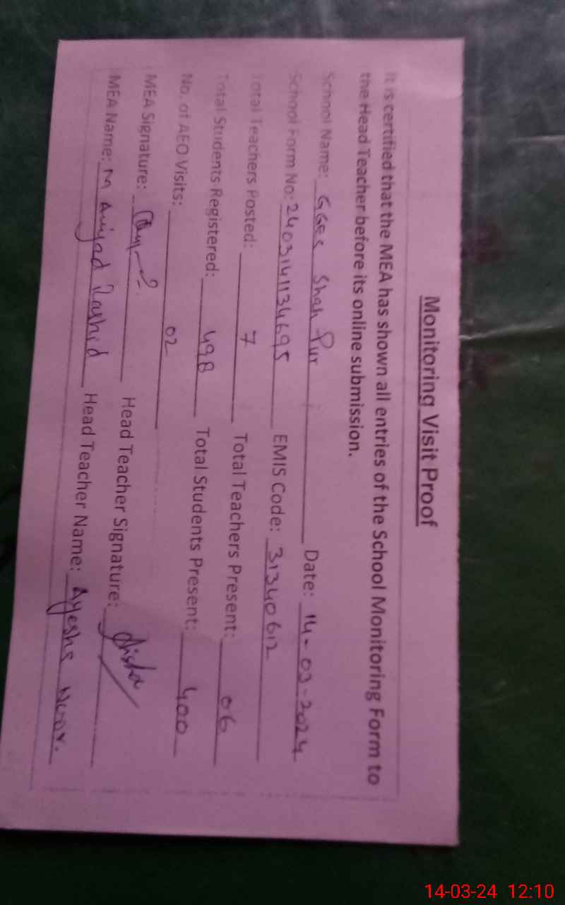 | EMIS Code: 31340612 | Name of School: GGES SHAH PUR | |||
