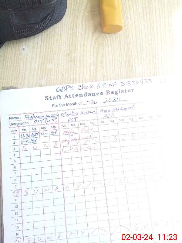| Name: Be**** Hu**** Designation: (School Headmaster's/Headmistress's) PST Phone/Cell Number: 03**** |