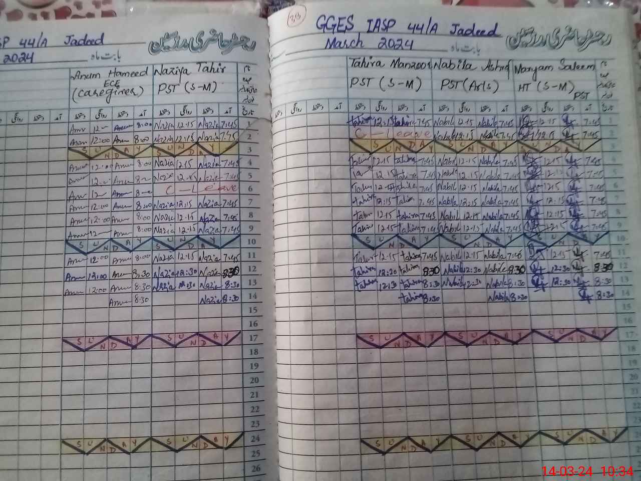 | Leave | Duty | Absent | Maternity | Medical | Ex- Pak |