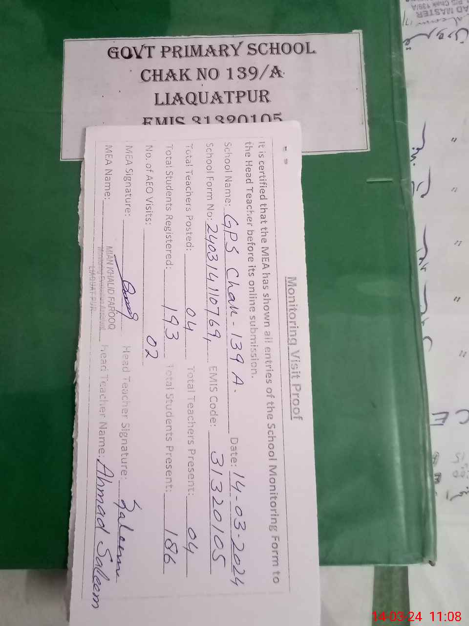 | EMIS Code: 31320105 | Name of School: GPS CHAK 139/A | |||