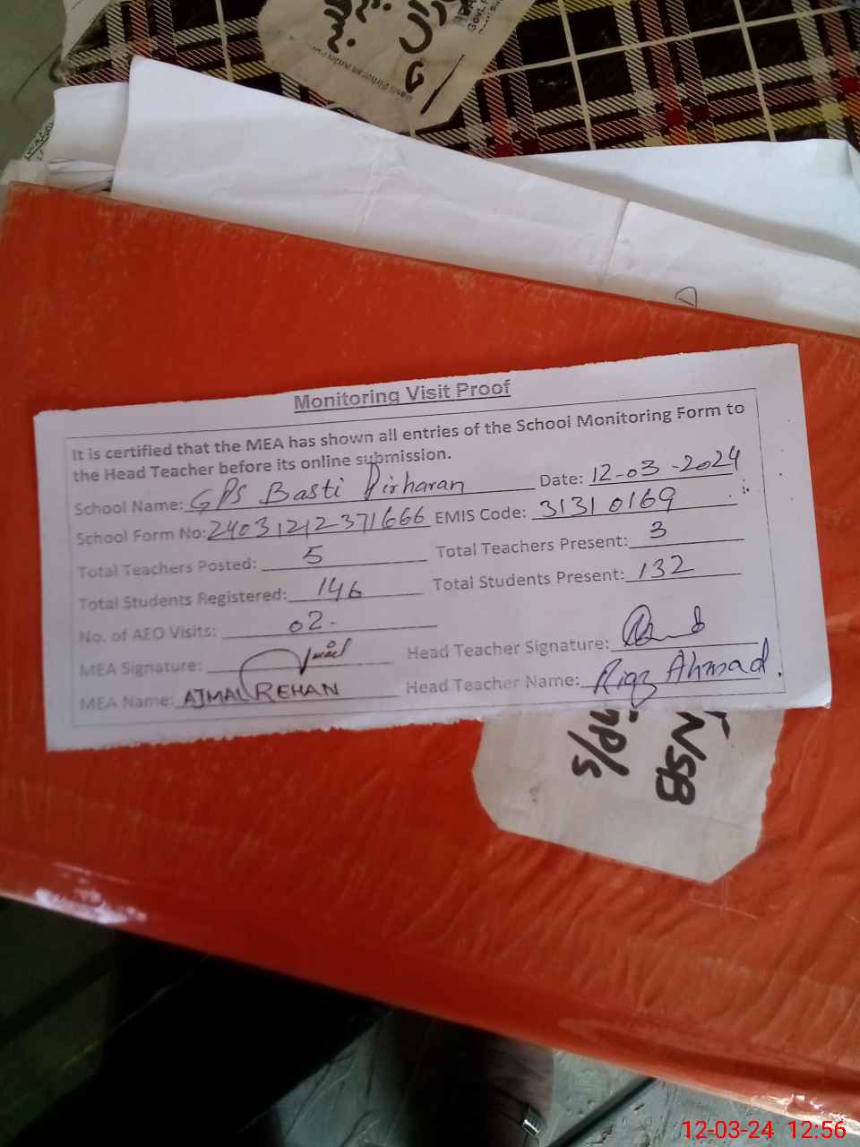 | EMIS Code: 31310169 | Name of School: GPS BASTI PIRHARAN | |||