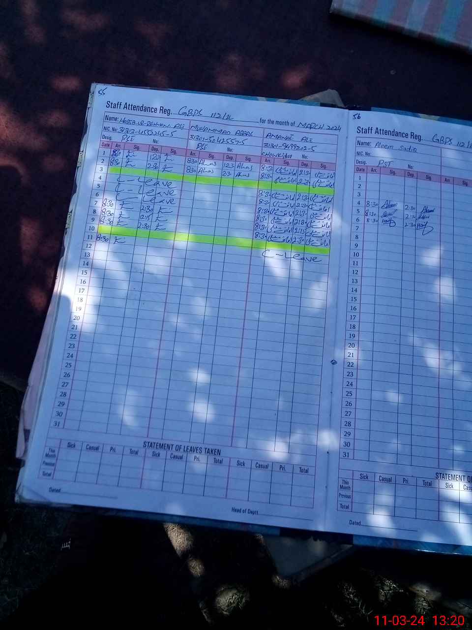 | CNIC | Full Name | Designation | R/C | Absence During Last Calender Month |