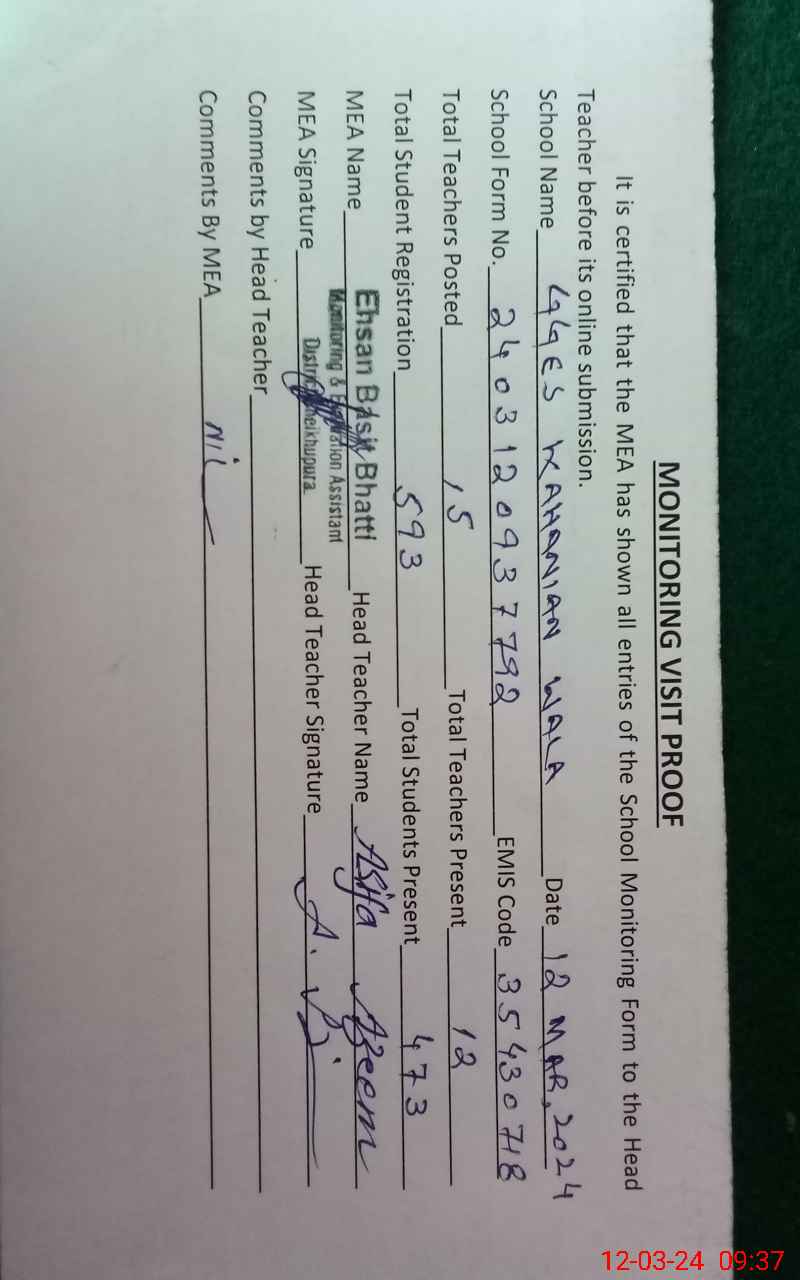 | EMIS Code: 35430718 | Name of School: GGES KAHANIAN WALA | |||