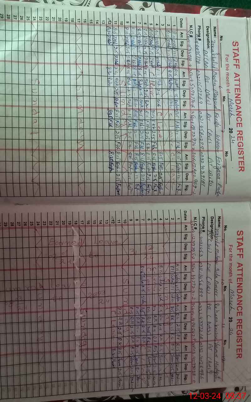 | Name: Qa**** Re**** Designation: (School Headmaster's/Headmistress's) S.S.T.(Science) Phone/Cell Number: 03**** |