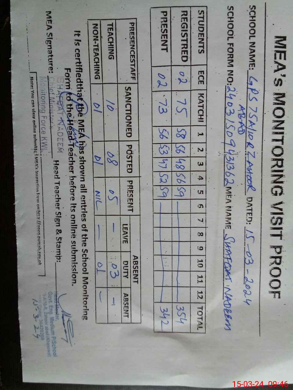 | EMIS Code: 36420208 | Name of School: GPS 75-A/10-R ZAHOOR ABAD, KHANEWAL | |||